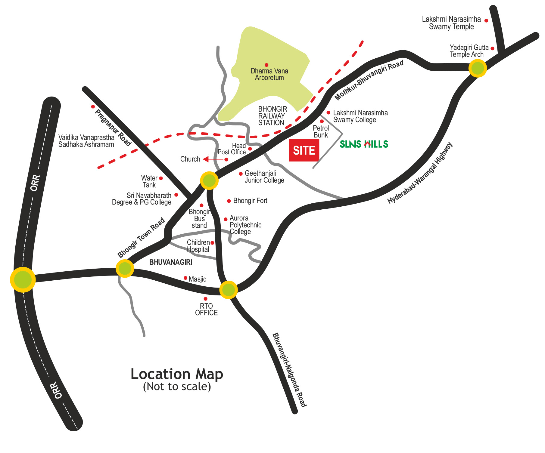 Haripriya Hills is being developed on an elevated expanse in Bhongiri , a bustling town strategically located between Secunderabad and Warangal. It is a developed district and is already a spiritual destination with devotees thronging the famous Yadigiri Gutta Temple in the vicinity. There are schools, hospitals, markets and premium residential hubs around, making it an ideal location to move in. Road access is absolutely on-point, and connects Haripriya Hills to every venue and every dream